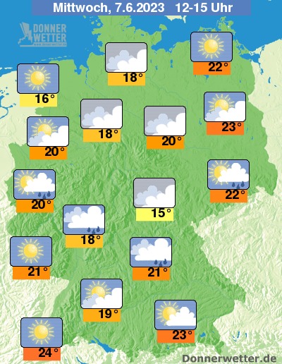 Heute Nachmittag zeigt sich das Wetter vor allem im Süden, Westen und im Küstenumfeld oft heiter bis sonnig und trocken. Im übrigen Bundesgebiet ziehen jedoch oft viele und nicht selten auch dichte Wolken durch, dabei bilden sich gebietsweise Schauer, selten sind zudem auch Gewitter möglich. Die Temperatur liegt bei 16 Grad direkt an der Nordsee und bei etwa 24 Grad am Oberrhein.