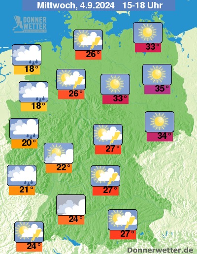 Die Temperaturen erreichen am Nachmittag Werte um 18 Grad im Emsland und 35 Grad an der Spree.