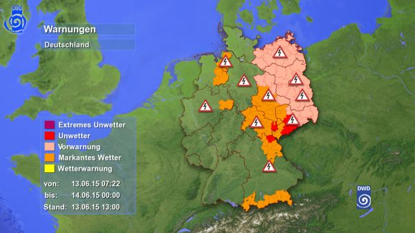 Nachmittags schwere Gewitter in Berlin/Brandenburg, MV und Thüringen und Sachsen. Auch Bayern kann lokal noch schwere Gewitter erleben. Details in unserer 2-Stunden.Wetterprognose lokal.
