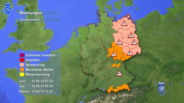 Die Temperaturen liegen dann bei Werten um 18 Grad C im Nordwesten und schwül-heißen 32 Grad in Sachsen.