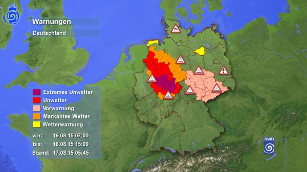 Achtung: durch Dauerregen bestehen besonders für NRW und Niedersachsen, Thüringen und Hessen Warnungen vor Erdrutschen und lokalen Überflutungen.