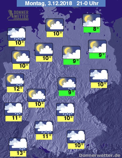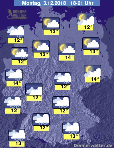 In den Abendstunden zeigt sich der Himmel über der Nordhälfte locker oder aufgelockert bewölkt, nördlich des Weserberglandes sowie entlang der Oder bleibt es zudem meist trocken.