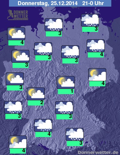 Heute Abend bleibt es zumeist bei der wechselnden bis starken Bewölkung, dabei gehen die zeitweiligen Niederschläge meist in Schneeregen oder Schnee über, zum Teil fällt aber auch noch Regen. Im Küstenumfeld weht frischer und teils starker Wind. Die Abendtemperatur liegt bei 4 Grad im Oberrheingraben und um 1 Grad im Grabfeld.