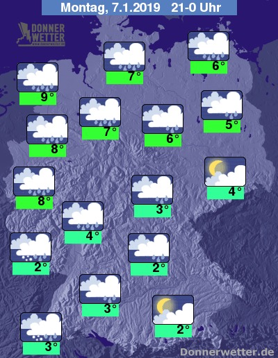 Die Temperaturen erreichen Werte um 2 Grad C in Oberbayern und um 9 Grad C in Emden.
