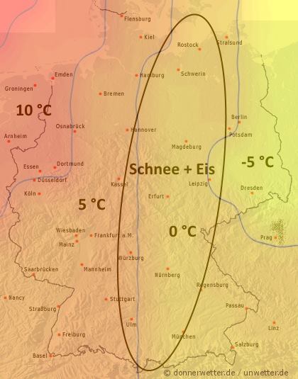 In der Nacht zum Mittwoch halten sich nach Südwesten hin dichte Wolken aus denen Schnee, Schneeregen oder auch teils Regen fällt, dabei besteht Glättegefahr! Weiter nach Nordosten hin ist der Himmel meist nur locker bewölkt, vor allem im Osten auch sternenklar, dazu bleibt es trocken. Die Temperatur sinkt auf 4 Grad in Emden und bis auf -11 Grad in Mittelfranken.