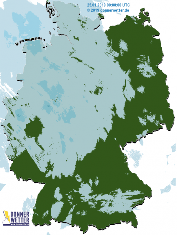 Heute halten sich verbreitet dichte Wolken, dabei fällt immer wieder bzw. zeitweise Regen, über der Osthälfte des Landes fallen die Niederschläge zum Teil auch als Schneeregen oder Schnee. Die Temperatur erreicht insgesamt mildere 0 bis 7 Grad.