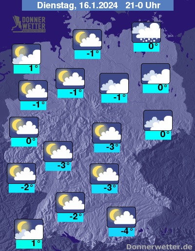 In der Nacht nehmen die Wolken über dem Süden des Landes dann zu, in der Südwesthälfte kommt dabei Niederschlag auf. Dieser fällt teils als Schnee, teils auch als gefrierender Regen. Es besteht hier lokal ein hohes Glätterisiko!