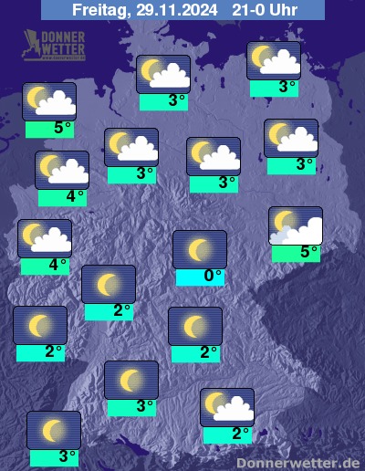 Die Temperaturen gehen in den frühen Morgenstunden zurück auf Werte um 4 Grad an der Nordseeküste und -3 Grad in Franken.