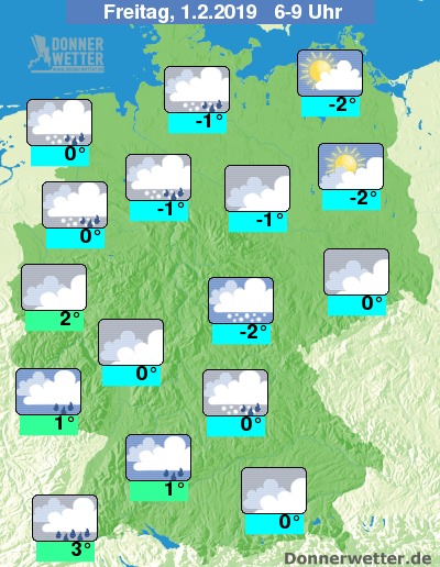 Der Freitag startet in den meisten Regionen dann mit einer geschlossenen Wolkendecke, einzelne Lichtblick sind nur im äußersten Nordosten zu erwarten. Nordwestlich des Teutoburger Walds sowie in der Südhälfte muss zum Berufsverkehr zudem mit Regen-, Schneeregen- oder Schneeschauern gerechnet werden.