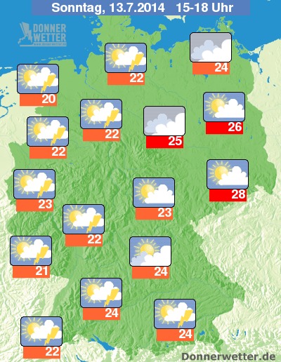 Am Abend bilden sich besonders im Westen und Süden einzelne Schauer und Gewitter, im Osten und Nordosten bleibt es auch häufig trocken, hier besteht ein leichtes Schauer- und Gewitterrisiko. Die Abendwerte liegen bei sehr milden 22 Grad in Berlin und etwas kühleren 18 Grad im Taunus.