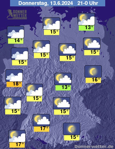 Die Temperaturen gehen in den Frühstunden zurück auf Werte um 13 bis 9 Grad.