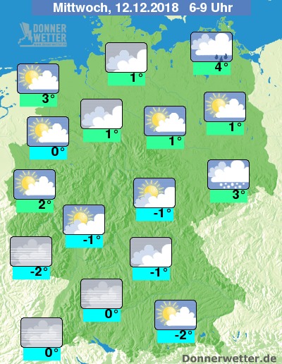 Die Temperaturen erreichen am Morgen Werte um -2 bis 4 Grad C.