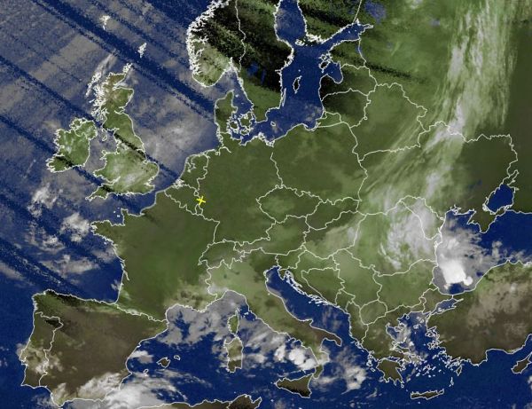 Auf dem Satellitenfoto von heute Morgen zeigt sich der europäische Kontinent über weite Strecken nur locker bewölkt und verbreitet auch wolkenlos. Dichte und weit hochreichende Quellbewölkung ist jedoch über dem westlichen schwarzen Meer zu erkennen. Hier sorgen die Ausläufer eines Tiefs über der nördlichen Türkei für teils kräftige Schauer und Gewitter.