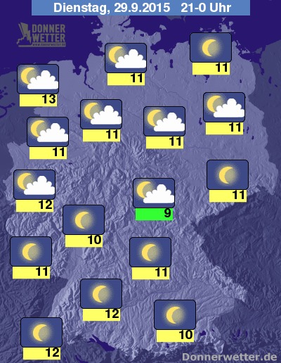 Heute Abend ziehen nach Norden hin einige, meist aber nur lockere Wolkenfelder durch, sonst zeigt sich der Himmel aber vor allem über der Südhälfte Deutschlands verbreitet sternenklar. Es bleibt überall trocken bei Abendwerten von 13 Grad in Ostfriesland und etwa 9 Grad im Grabfeld.
