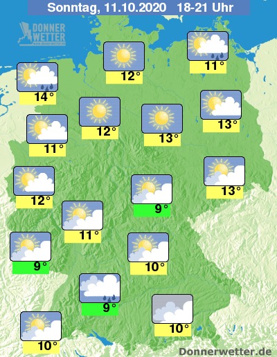 Heute Abend halten sich über dem Süden weiterhin dichte Wolken und es fällt hier gebietsweise Regen. Oft stärker bewölkt, jedoch trocken ist es von Thüringen, über Sachsen bis ins südlichen Brandenburg. Im großen Rest des Landes ist es hingegen meist nur locker bewölkt bis sonnig und bis auf einzelne Schauer an den Küsten auch trocken. Die Temperatur liegt anfangs noch bei 9 Grad im Grabfeld und bis 14 Grad in Emden.