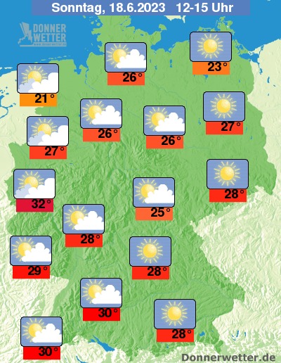 Heute Nachmittag ist es häufig heiter oder sonnig, jedoch bilden sich hier und da auch einige Quellwolken, es bleibt aber weitgehend trocken. Die Temperatur liegt bei nur etwa 21 Grad an der Nordsee, sonst bei 25 Grad in Jena und bis 32 Grad in der Kölner Bucht.