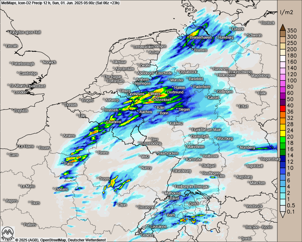 Am Sonntag zieht teils aufgelockerte, oft jedoch starke Bewölkung durch, dabei bilden sich einzelne Schauer, insbesondere an den Alpen, sonst nur nur vereinzelt entwickeln sich auch Gewitter. Die Höchstwerte erreichen 19 Grad in Cuxhaven und bis 27 Grad in München.