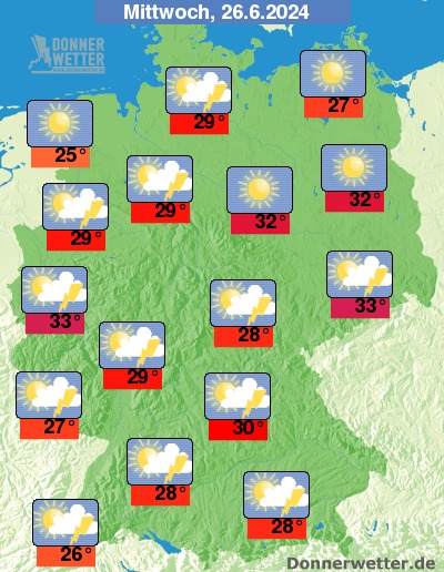 Die Temperaturen erreichen am Mittwoch Höchstwerte um 25 Grad an der Nordseeküste und um 33 Grad in der Lausitz.