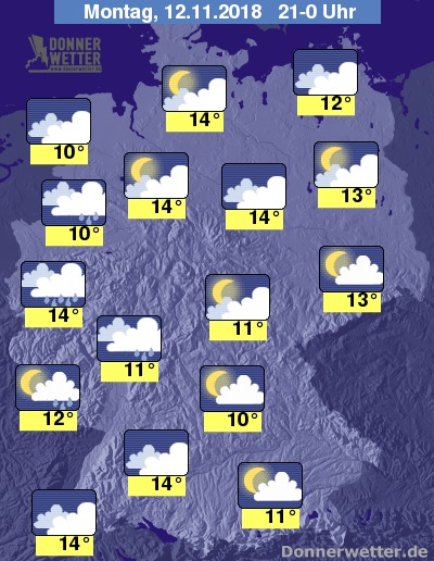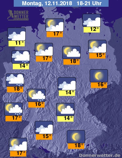 Am späten Abend zeigt sich der Himmel überwiegend bedeckt oder aufgelockert bewölkt. Schauer sind vor allem noch in der Westhälfte des Landes zu erwarten, sonst bleibt es meist trocken.