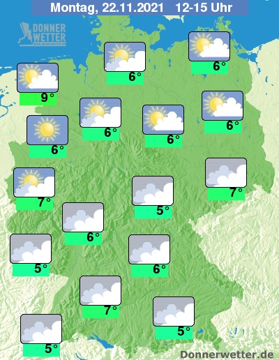 Heute Nachmittag bleibt es über der Südhälfte des Landes überwiegend wolkenverhangen. Im Alpenvorland fällt zudem noch hier und da etwas Regen oder auch Schnee, oft ist es hier auch neblig-trüb. Weiter nach Norden hin lockert es verbreitet auf und teils ist es auch sonnig, hier bleibt es trocken. Die Temperatur liegt bei 5 Grad im Thüringer Becken und 9 Grad an der Nordsee.