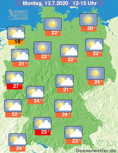Heute Nachmittag herrscht über Deutschland verbreitet heiteres bis sonniges Wetter. Bei Temperaturen von eher kühlen 18 Grad an der Nordsee und bis 27 Grad im Rheinland bleibt es bundesweit trocken.