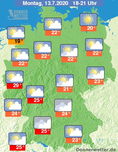 Heute Abend ziehen im Süden und teils auch im Osten mehr und gebietsweise auch dichte Wolken auf. Im übrigen Land ist es weiterhin heiter bis sonnig. Es bleibt landesweit trocken bei Werten zwischen 19 Grad in Cuxhaven und bis zu 29 Grad in der Kölner Bucht.