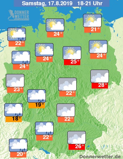 Heute Abend ist es über dem Norden und Osten teils aufgelockert, teils stark bewölkt, dazu bleibt es weitgehend trocken. Im übrigen Bundesgebiet halten sich meist dichte Wolken, dazu fällt in den westlichen Landesteilen gebietsweise Regen, sonst bleibt es weitgehend trocken. Die Temperatur liegt anfangs noch bei 18 Grad im Saargau und bis zu 28 Grad in Dresden.