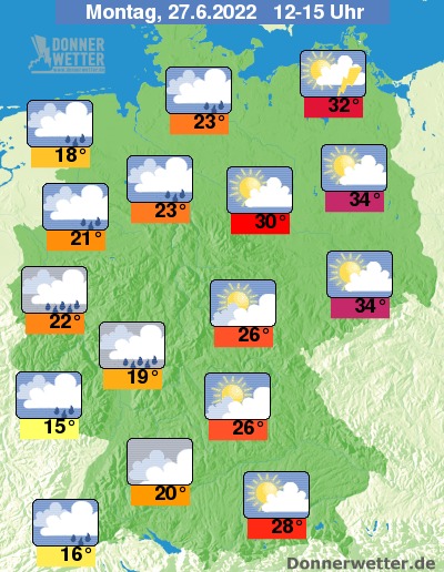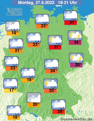 Heute Abend ziehen vor allem über die östlichen Landesteile häufig Schauer und zum Teil kräftige Gewitter hinweg, teils ist es aber auch noch locker bis aufgelockert bewölkt. Im übrigen Land ist es es oft stark und zum Teil auch wechselnd bewölkt, dazu können sich weiterhin einzelne Schauer bilden. Die Temperatur liegt bei 17 Grad in Saarbrücken und bis 35 Grad in Dresden.