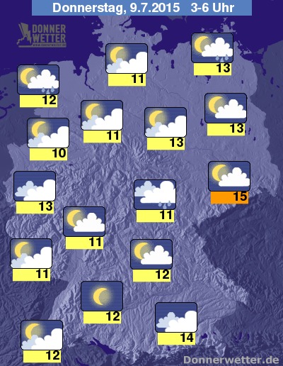 In der kommenden Nacht zeigt sich der Himmel wechselnd bewölkt, vor allem im Süden ist es auch oft nur gering bewölkt und dazu trocken, sonst zieht jedoch auch immer wieder auch starke Bewölkung durch und hier und da sind einzelne Schauer möglich, zumeist bleibt es aber trocken. Die Temperatur sinkt auf milde 15 Grad in Dresden und bis 10 Grad im Münsterland.