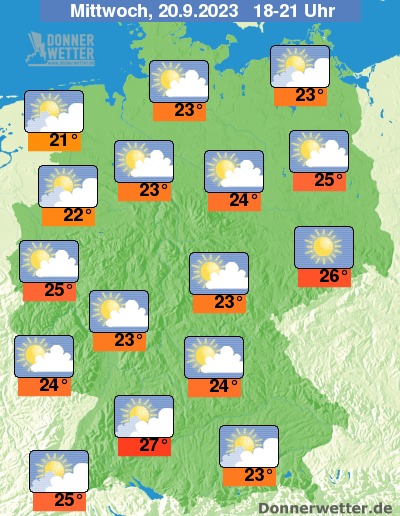 Heute Abend sind im Süden und Westen oft einige Wolkenfelder unterwegs, Regen fällt aber keiner. Im übrigen Land ist es verbreitet heiter oder sonnig und ebenso trocken. Die Temperatur liegt bei 21 Grad in Cuxhaven und bis 27 Grad in Stuttgart.