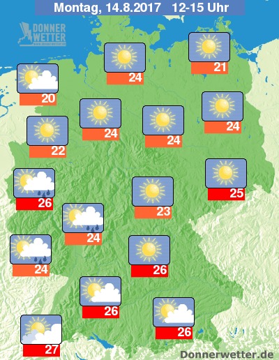 Heute Nachmittag strahlt über der Nordosthälfte Deutschlands die Sonne von einem überwiegend wolkenfreien Himmel. Im Westen und Süden ziehen hingegen öfters auch einige und zum Teil dichte Wolken durch, dazu sind vor allem im Westen einzelne Schauer möglich. Die Temperatur liegt bei 20 bis 27 Grad.