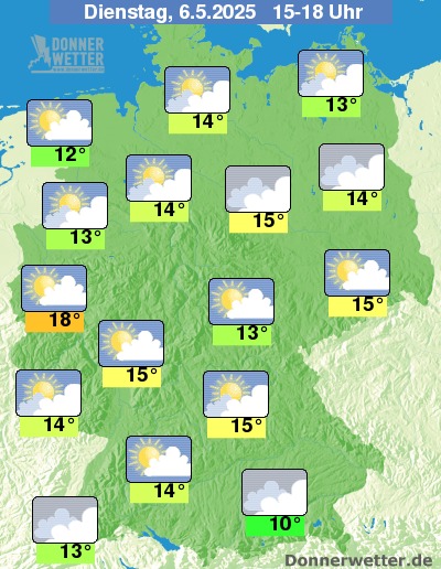 Die Temperaturen erreichen Höchstwerte um 10 Grad im Alpenvorland und 18 Grad im Rheinland.