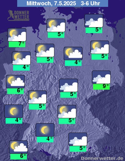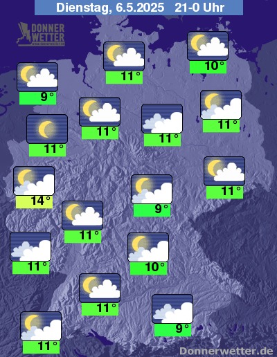 In der Nacht zum Mittwoch überwiegt wechselnde oder geringe Bewölkung, vor allem im Westen und Südwesten kann es gebietsweise auch aufklaren. Dichter bewölkt zeigt sich der Himmel in der Nacht über dem Südosten sowie im Nordosten. Es bleibt trocken.