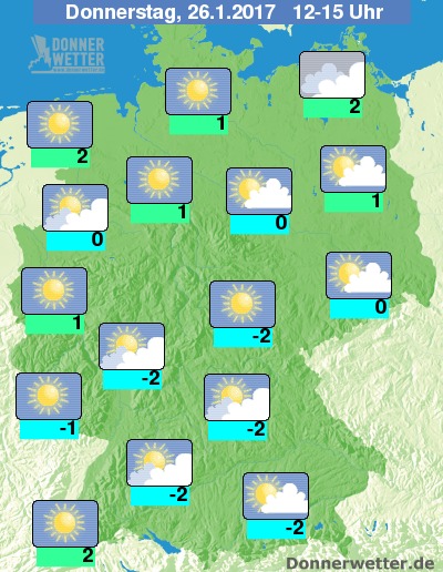 Dazu liegen die Höchsttemperaturen bei Werten um den Gefrierpunkt. In Bayern werden verbreitet Werte um die -2 Grad gemessen, in Baden und an den Küsten sind bis +2 Grad möglich.