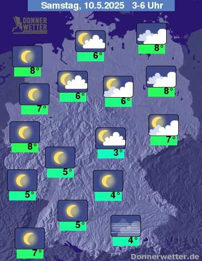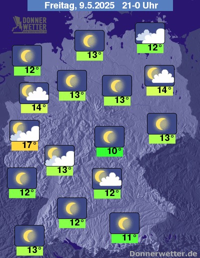 In der Nacht zum Samstag zeigt sich der Himmel über dem Nordosten stärker bewölkt, in den übrigen Landesteilen dominiert geringe Bewölkung oder die Sterne funkeln von einem wolkenlosen Himmel. Es bleibt trocken.