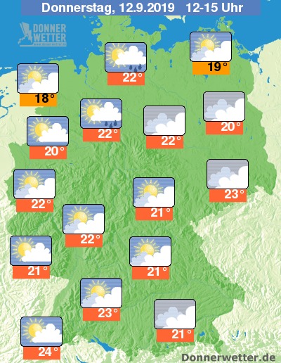 Die Temperaturen bewegen sich allgemein zwischen 18 und 24 Grad, am kühlsten bleibt es dabei an den Küsten, am wärmsten wird es im Breisgau.