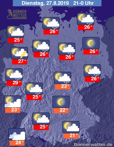 Die Temperaturen sinken bis zum späteren Abend auf Werte um 21 bis 29 Grad.
