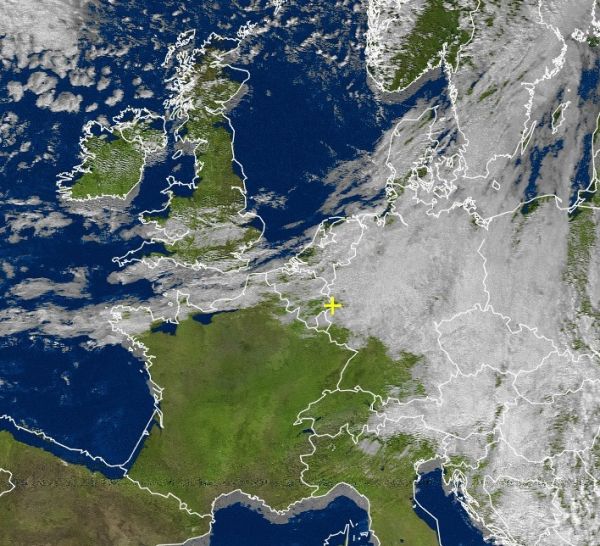 Auf dem aktuellen Satellitenfoto sind die verbreitet kompakten Wolken von Südost-, über Ost- bis nach Nordeuropa zu sehen. Tiefdruckeinfluss sorgt hier für sehr unbeständiges Wetter mit häufig Schauern, und vor allem an der Ägäis auch mit vielen Gewittern.