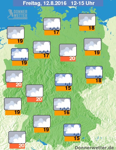 Heute Nachmittag ist es über Deutschland noch überwiegend stark bewölkt und besonders über der Osthälfte fällt zeitweise Regen. Von Westen her lassen die Niederschläge über der Landeswesthälfte immer weiter nach und gebietsweise kann es auch auflockern. Die Temperatur steigt auf 15 Grad in Rosenheim und bis 20 Grad im Rheinland.