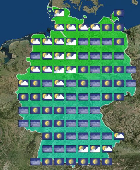 In der Nacht zum Donnerstag ist der Himmel zum größten Teil sternenklar. Lockere Wolkenfelder ziehen vor allem über den Norden und Westen hinweg, dazu bleibt es trocken. Die Temperatur sinkt auf 12 Grad in Emden und bis 2 Grad am Alpenrand.