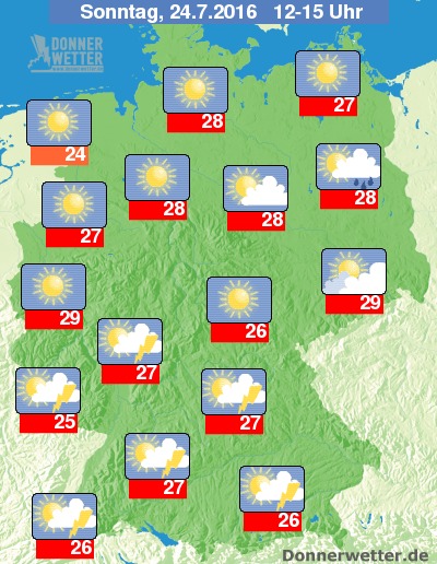 Heute Nachmittag ist es über der Nordhälfte der Bundesrepublik verbreitet sonnig und nur gebietsweise ziehen auch mal einige Wolken durch, dabei bleibt es weitgehend trocken. Oft heiter und meist trocken ist es zudem auch in der Osthälfte von Bayern. In den weiter nach Südwesten hin liegenden Landesteilen zeigen sich zwar oft Auflockerungen, jedoch ziehen hier ebenso auch dichte Wolken durch, die hier wiederholt für Schauer und auch örtliche Gewitter sorgen. Die Temperatur steigt auf 25 Grad an der Nordsee und bis auf etwa 30 Grad im Ruhrgebiet.