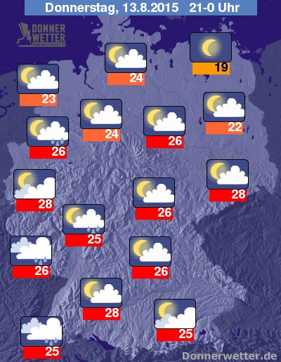 Heute Abend ziehen vom Süden, über den Südwesten bis in den Westen des Landes häufig dichte Quellwolken auf, die zu möglichen Schauern und teils starken Gewittern führen können. In der Nordosthälfte Deutschlands bleibt es hingegen meist locker bewölkt, vor allem im Nordosten selbst oft auch sternenklar und dabei weitgehend trocken. Die Abendtemperatur liegt bei schwülwarmen 28 Grad in Mannheim und bei etwa 19 Grad in Vorpommern.
