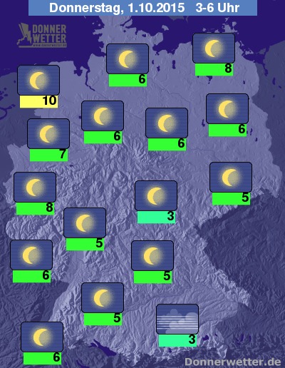 In der Nacht zum Donnerstag bleibt der Himmel über dem Land sternenklar, dazu bleibt es trocken. Die Tiefstwerte liegen bei 10 Grad an der Nordseeküste und um 3 Grad in München.