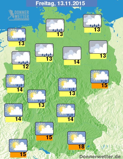 Die Temperaturen am Freitag liegen bei Werten um 12 Grad C bis 18 Grad C.