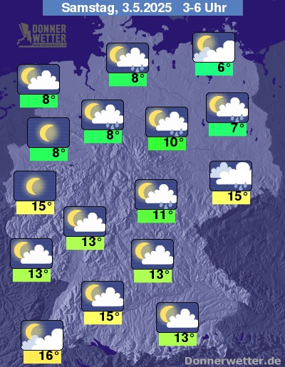Die Temperaturen gehen in den frühen Morgenstunden zurück auf Werte um 16 Grad am Oberrhein und 6 Grad an der Ostseeküste.
