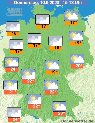 Die Temperaturen bewegen sich zwischen 15 und 19 Grad im Norden, sonst werden zwischen 19 und 23 Grad erreicht.