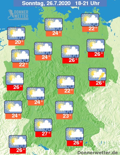 Heute Abend bilden sich anfangs besonders über der Osthälfte Deutschlands noch einige, zum Teil kräftige Schauer und auch lokale Gewitter. Von Westen her klingen Schauer und Gewitter jedoch mehr und mehr ab und die Sonne kommt wieder verbreitet zum Vorschein. In den östlichsten Landesteilen bleibt es aber noch meist stark bewölkt. Die Temperatur liegt bei 20 Grad in Cuxhaven und bis 27 Grad im Raum Stuttgart.