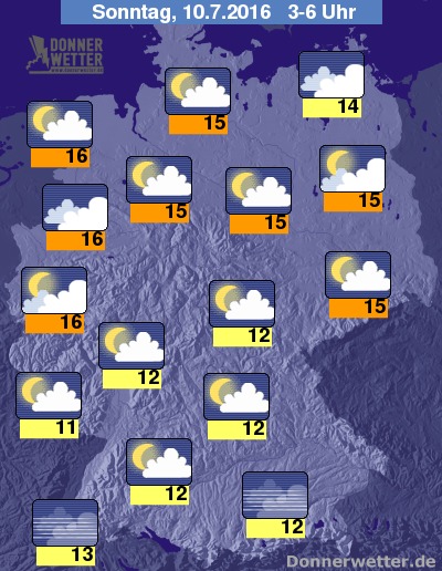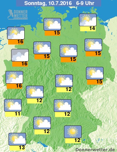 Die Temperaturen erreichen am Morgen in der Nordwesthälfte Werte um 16, im Süden um 12 Grad C.