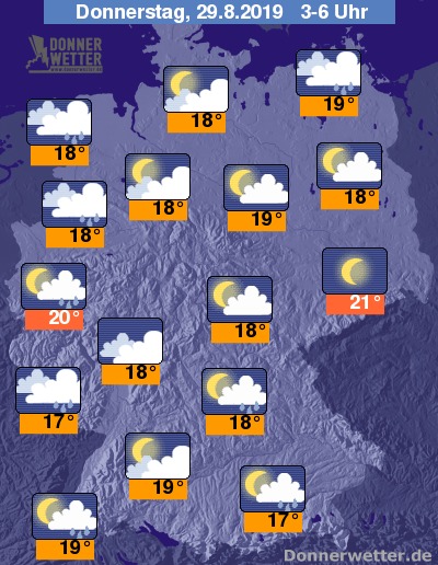 In der Nacht auf Donnerstag verdichten sich die Wolken vor allem in der West- und Nordwesthälfte Deutschlands. In den übrigen Landesteilen überwiegen meist lockere Wolkenfelder, im äußersten Südosten ist es teils auch sternenklar. Vor allem entlang der Küsten, in Bayern sowie entlang des Rheins muss zeitweise mit Schauern gerechnet werden.