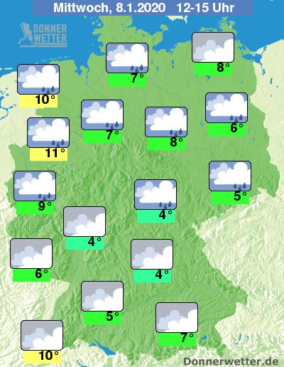 Die Temperaturen bewegen sich zwischen 4 Grad im Bereich der Landesmitte und bis zu 11 Grad am Niederrhein.